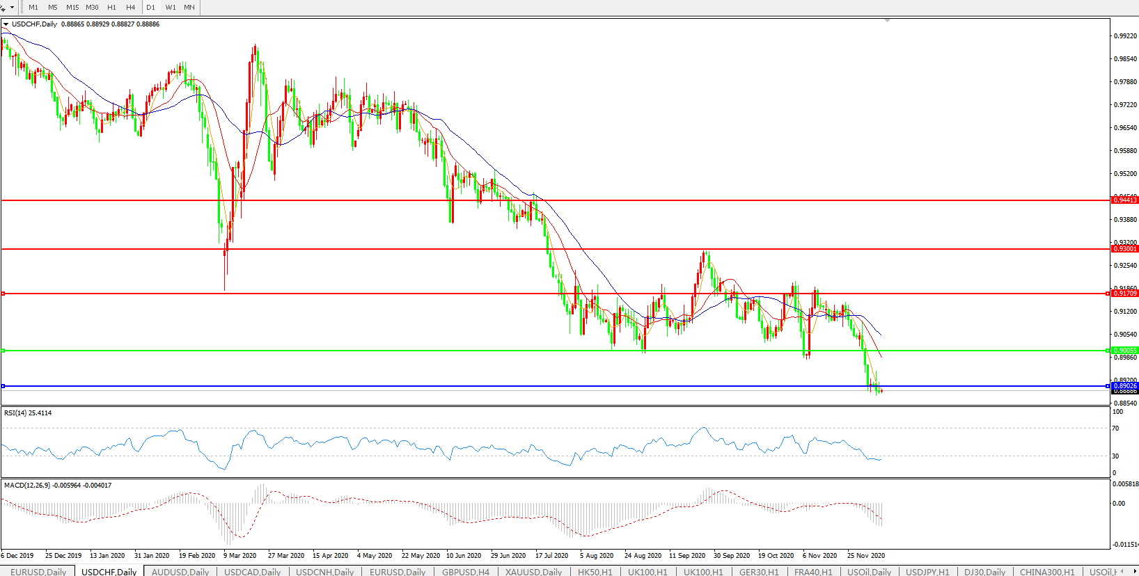 美元兑瑞郎USDCHF    日线图: