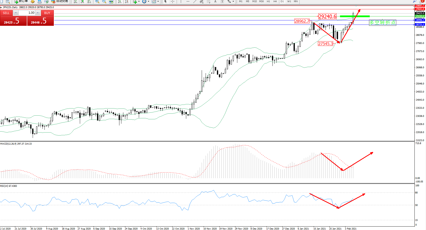 日经225指数2月8日(周一)收盘上涨598.31点,涨幅2.08%,报29377.50点。惠誉确认日本评级为“ A”,前景展望负面。预计日本央行在未来一年将维持目前的货币政策,政策利率为-0.10%。预计日本2020年GDP萎缩5.3%。预计日本政府财政赤字将在2021年和2022年分别逐步缩小至10.1%和7.9%。日本政府:近期经济正出现疲软现象。日本明治公司与阿斯利康签署新冠肺炎疫苗存储与传输业务的合约。日本厚生劳动省表示,鉴于收到了各地方政府有关新冠疫苗运输方法的询问,将制定一部疫苗安全运输指南,并表示将在2月出示给地方政府等。日本国债期货连续第9天下跌,连续跌势创2003年以来最长。日本东京新增276例新冠肺炎确诊病例。