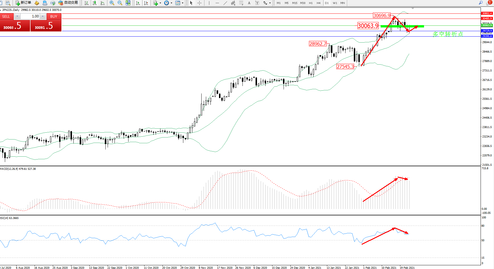 日经225指数2月24日(周三) 收盘下跌474.03点,涨幅1.57%,报29682.00点。与经济增长相比,工资增长一直比较缓慢。ETF收购并没有严重损害市场功能。不认为日本央行购买ETF导致了严重的公司治理问题。日本央行正在以敏感、灵活的方式买入ETF。将密切关注购买ETF的任何副作用。已经制定了相关安排,因此其ETF的购买不会对特定股票的价格造成巨大扭曲。目前不能透露具体的审查结果。日本央行的各种工具,包括其ETF购买,将成为3月审查的目标。现在考虑退出策略还为时过早。日本央行将寻找提高工具可持续性和有效性的方法,并将对市场影响的评估考虑在内。日本财务大臣麻生太郎:新冠肺炎疫情应对导致财政环境恶化。财政状况随着对新冠疫情作出应对而恶化。需要对增长、税收和财政纪律做出谨慎反应。日本行政改革担当大臣河野太郎:将从4月12日开始为老年人接种新冠疫苗。老年人优先接种疫苗,接种行动将于4月12日开始。疫苗剂量在最初是有限的。预计到3月底将收到大约2000箱辉瑞公司的新冠疫苗。日本东京新增213例新冠肺炎确诊病例。