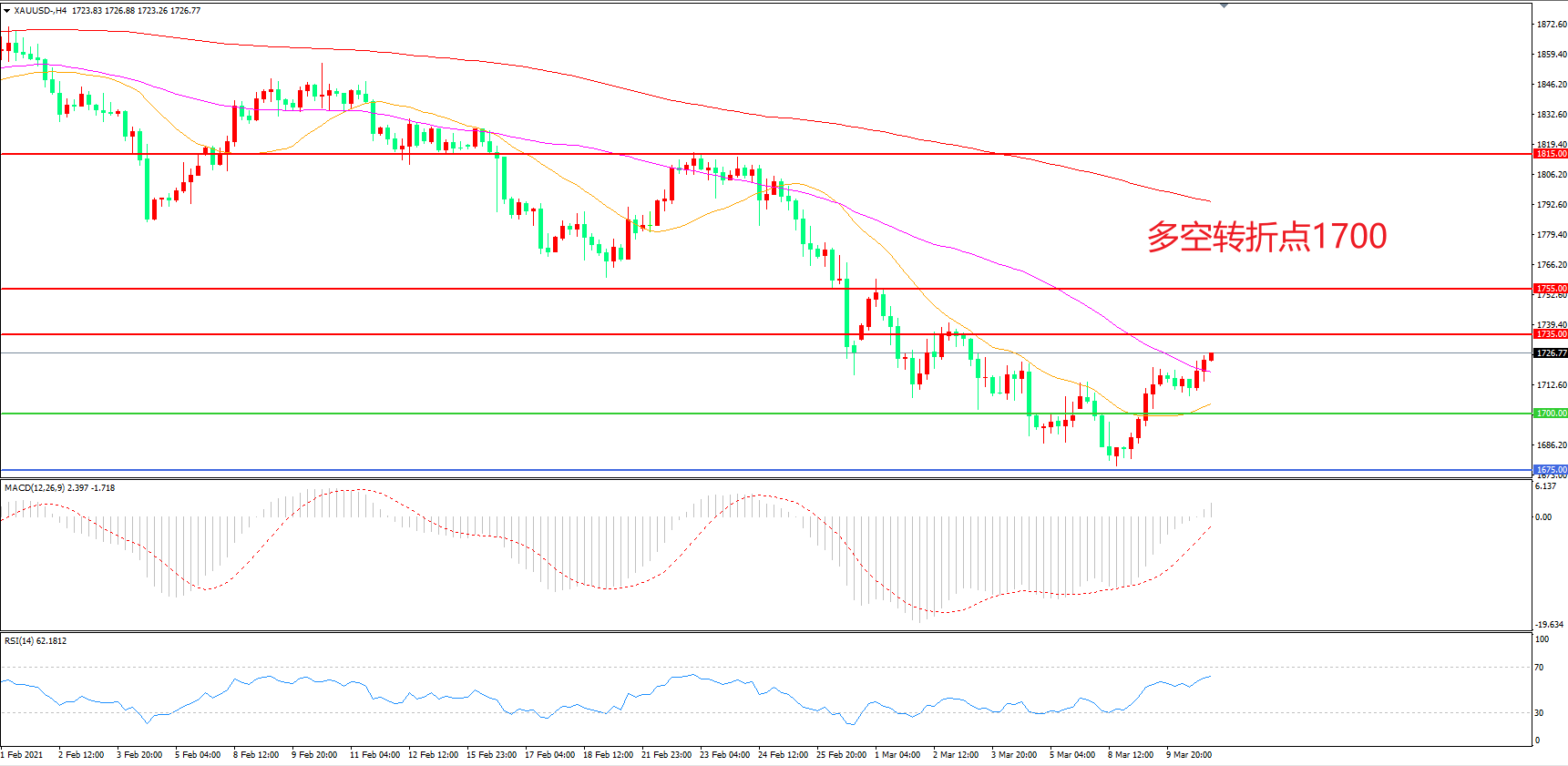 交易策略:在1700.00之上看涨,目标1735.00    1755.00