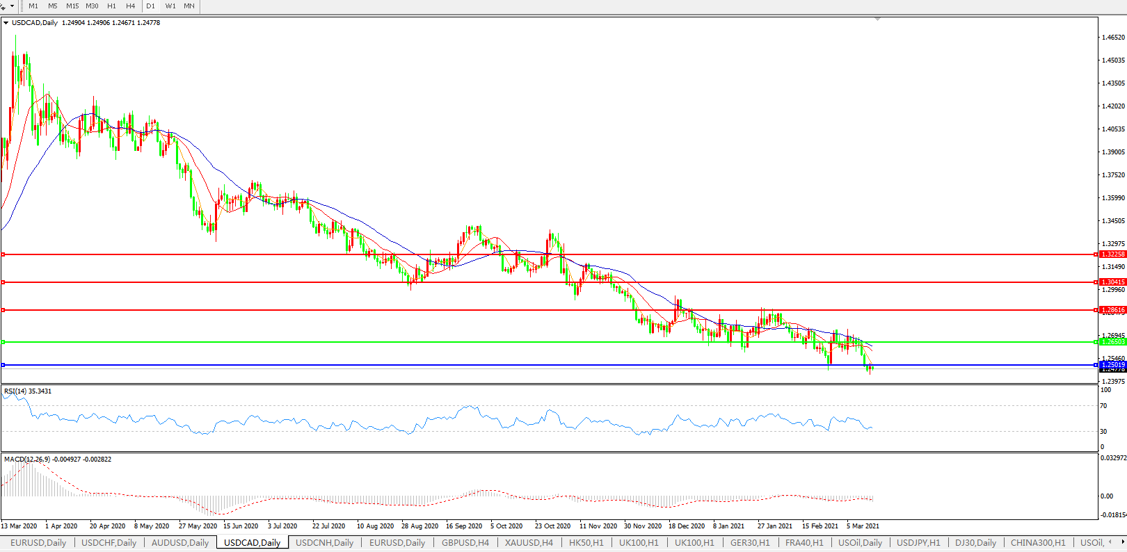 美元兑加元USDCAD 日线图: