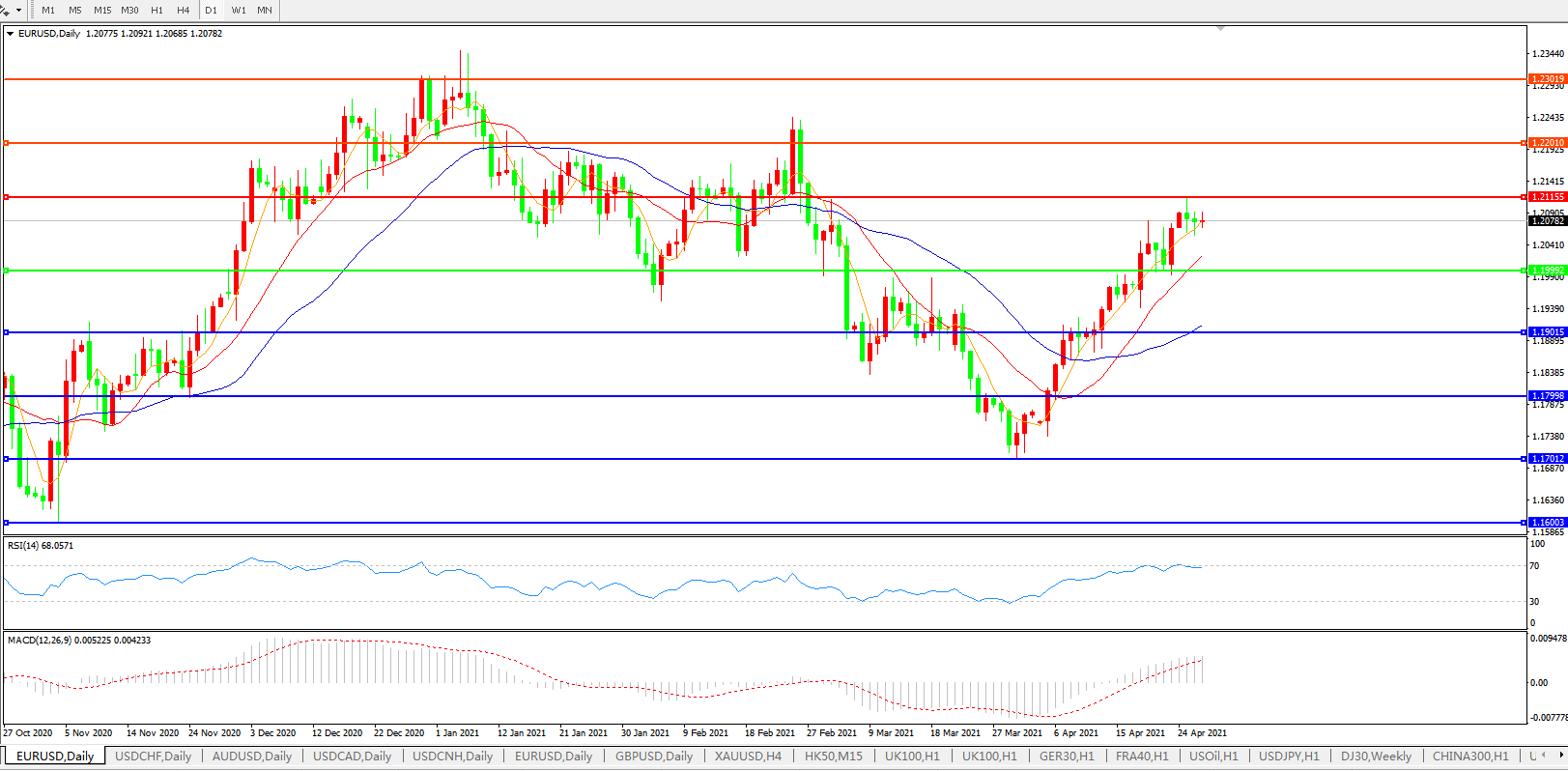 欧元兑美元EURUSD   日线图: