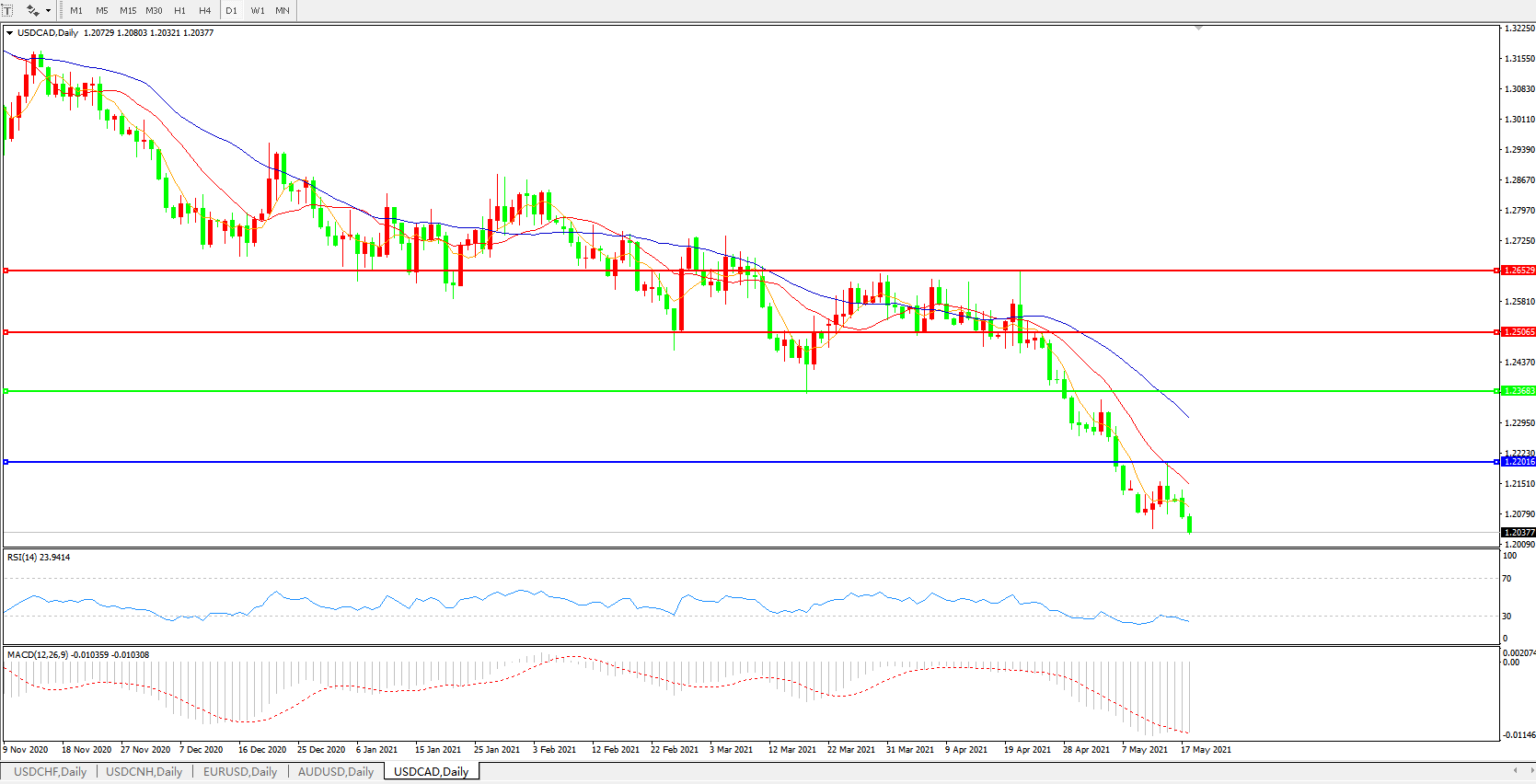 美元兑加元USDCAD    日线图: