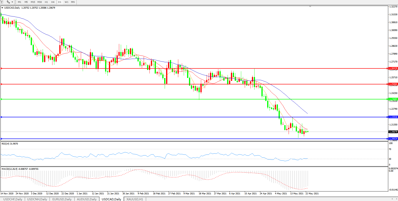技术面简析:日线图均线呈有序空头排列,汇价持续下行,MACD运行于0轴下方但量能开始缩量,RSI有走升迹象,预计短期汇价大概率将低位整理。