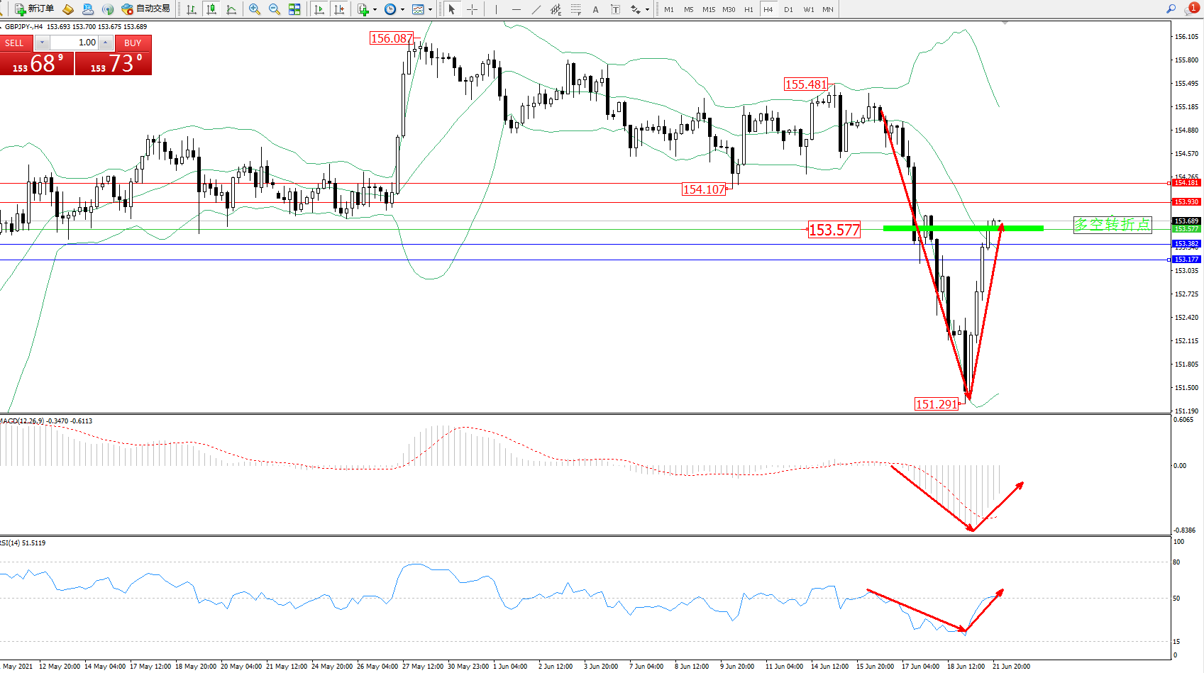 英镑兑日圆维持153.639附近震荡,英国央行正召开货币政策会议。由于通胀处在上升背景下,英央行料将反转为鹰派,但今年和明年加息似乎不太可能。上周主要因在美联储会议发出更加鹰派的信号后长期空仓遭到解除。美联储官员周五的发言发出不一的信号,圣路易斯联储主席布拉德发言鹰派,但之后明尼亚波利斯联储主席的发言呈鸽派。6月14日至17日进行的调查显示,通胀率将在今年第四季度达到2.4%的峰值,然后逐步回落。预期中值显示,央行将容忍通胀率升至3.0-3.5%,再高将感到不安。