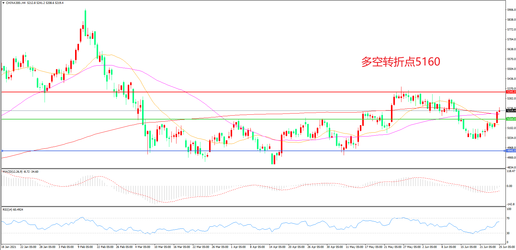 4小时图看,沪深300企稳后长阳拉升,短线行情受到提振,均线系统的阻力区间被突破,5160成为多空分水岭,MACD绿柱缩短,RSI指标走平,日内延续上行概率较大。