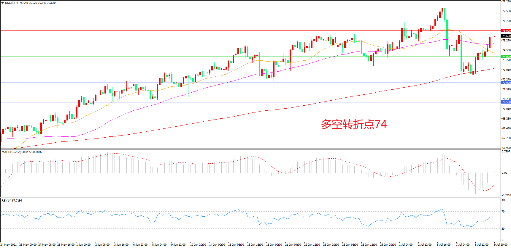 交易策略:在74.00之上看涨,目标76.00 78.50