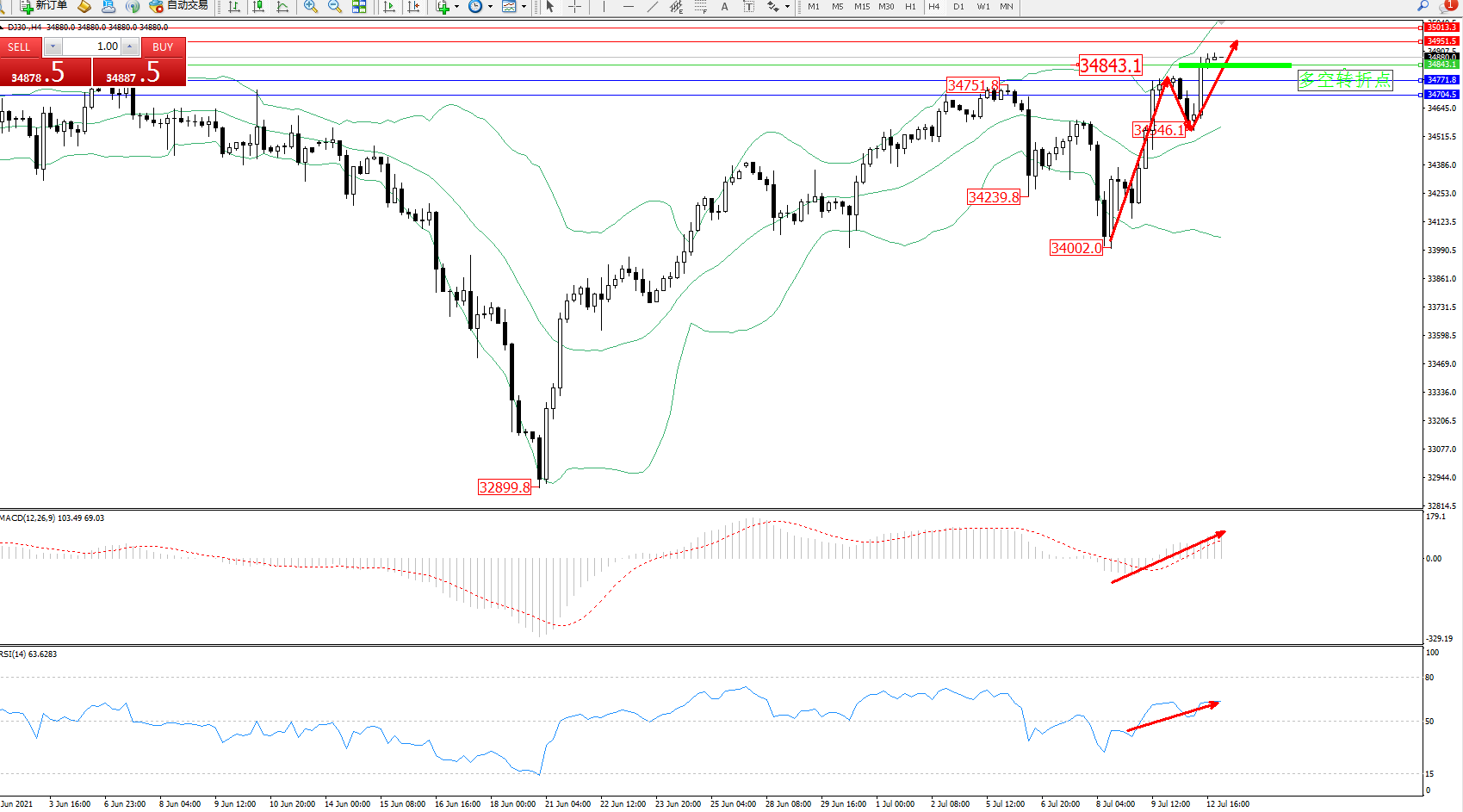 技术点评:多头动力低位持续震荡上扬,上方突破前期高位后不断向上移动中,布林带指标呈张口走势态势良好,且有进一步向上拉升中,MACD指标多头动力突破0轴线进入多头区域持续拉升中,RSI指标纠结于50均衡线上方多头区域维持整理平移中;