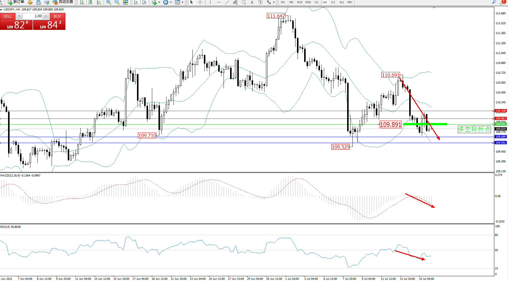 技术点评:空头动力强势下挫,触及布林带指标下轨附近节点后开始震荡,空头有继续向下移动态势,布林带指标呈张口走势持续中,MACD指标处于0轴线下方空头区域维持整理平移中,RSI指标处于50均衡线下方空头区域维持震荡徘徊;