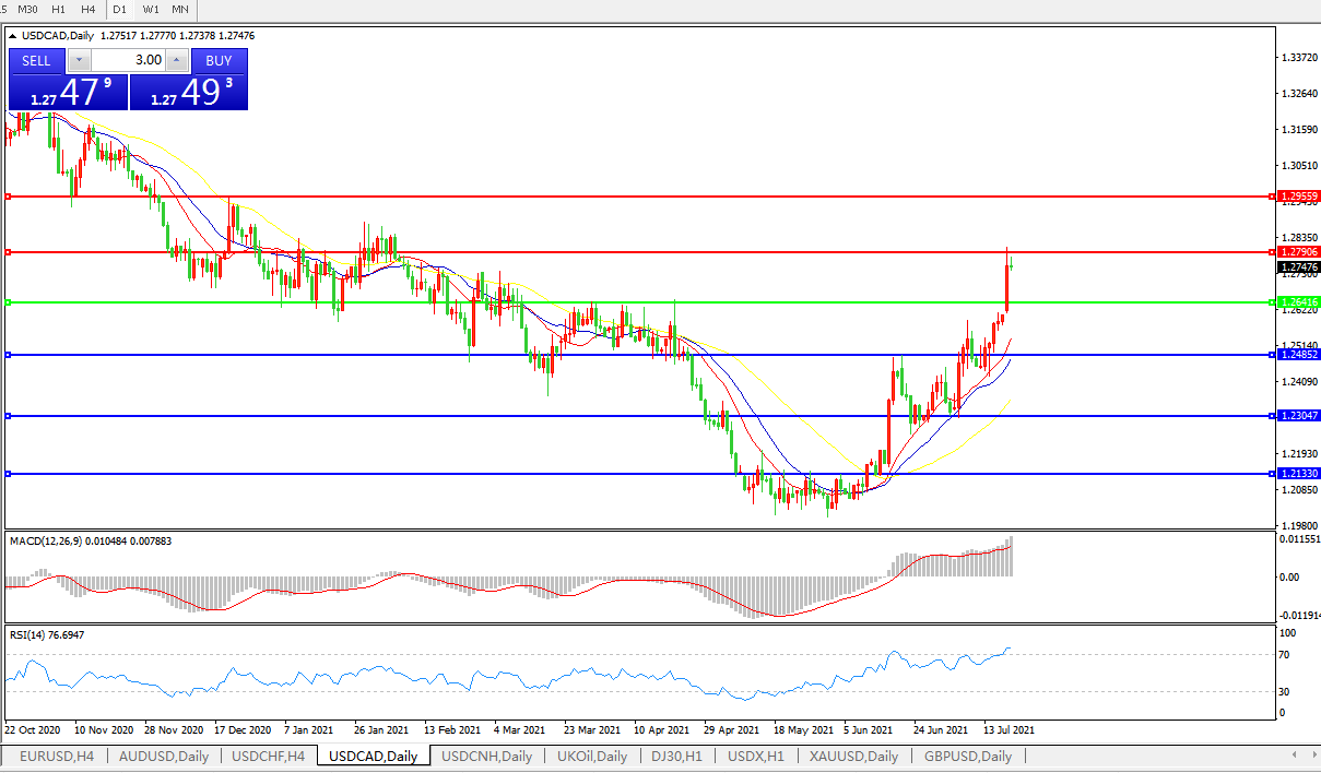 技术面简析:日图均线呈有序多头排列,汇价持续大幅走升,MACD运行于0轴上且量能持续放量,RSI快速走升,预计短期汇价大概率将进一步上行。