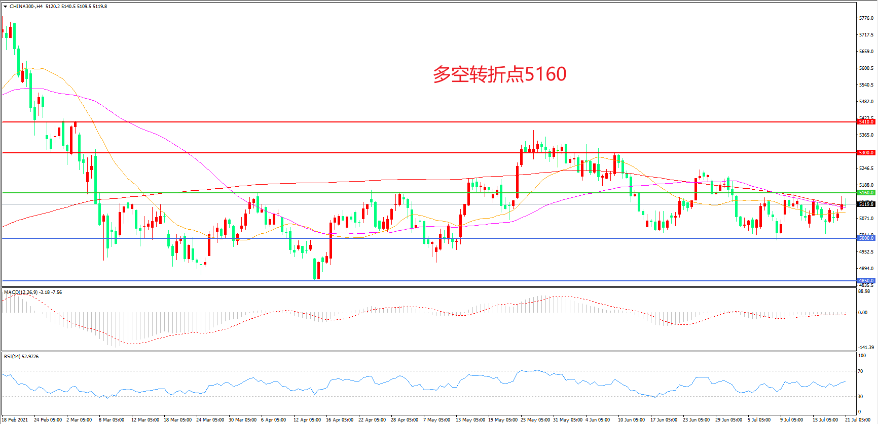 4小时图看,沪深300震荡反弹,形态上有突破均线系统压制迹象,三角形整理末期,一旦出现方向性选择,就会出现流畅的单边行情,重点关注5160一线的的得失,