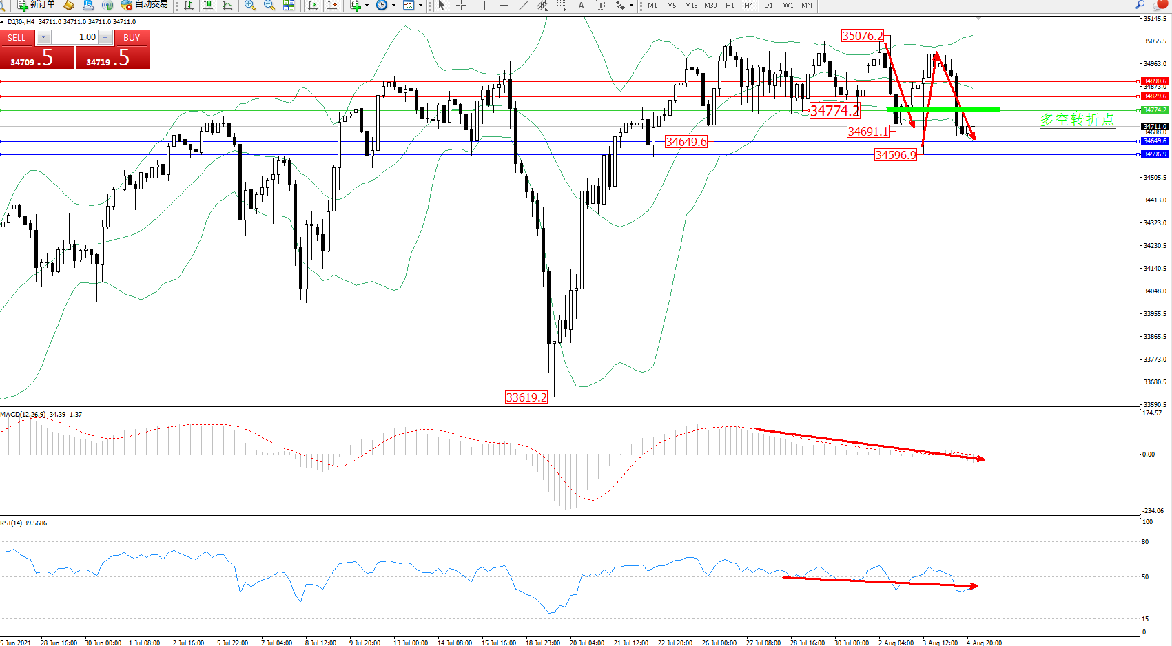 道琼斯指数8月4日(周三)收盘下跌323.34点,跌幅0.92%,报34793.06点;ADP民间就业数据逊于预期,与就业数据相抵消的是美国供应管理协会(ISM)公布的7月非制造业采购经理人指数(PMI)升至历史最高位,民主党参议员伊丽莎白·沃伦对美联储理事布雷纳德在金融监管方面的做法表示赞赏,同时批评美联储主席鲍威尔,称其过于保护大型金融机构。沃伦目前暂未明确表态支持布雷纳德担任美联储主席。一些白宫幕僚已经将美联储理事布雷纳德视为可能的主席人选,并且布雷纳德已经完全支持拜登的经济议程,不过鲍威尔仍然在政府内部有广泛的支持。预计拜登在9月之前不会就下一任美联储主席人选做出决定。