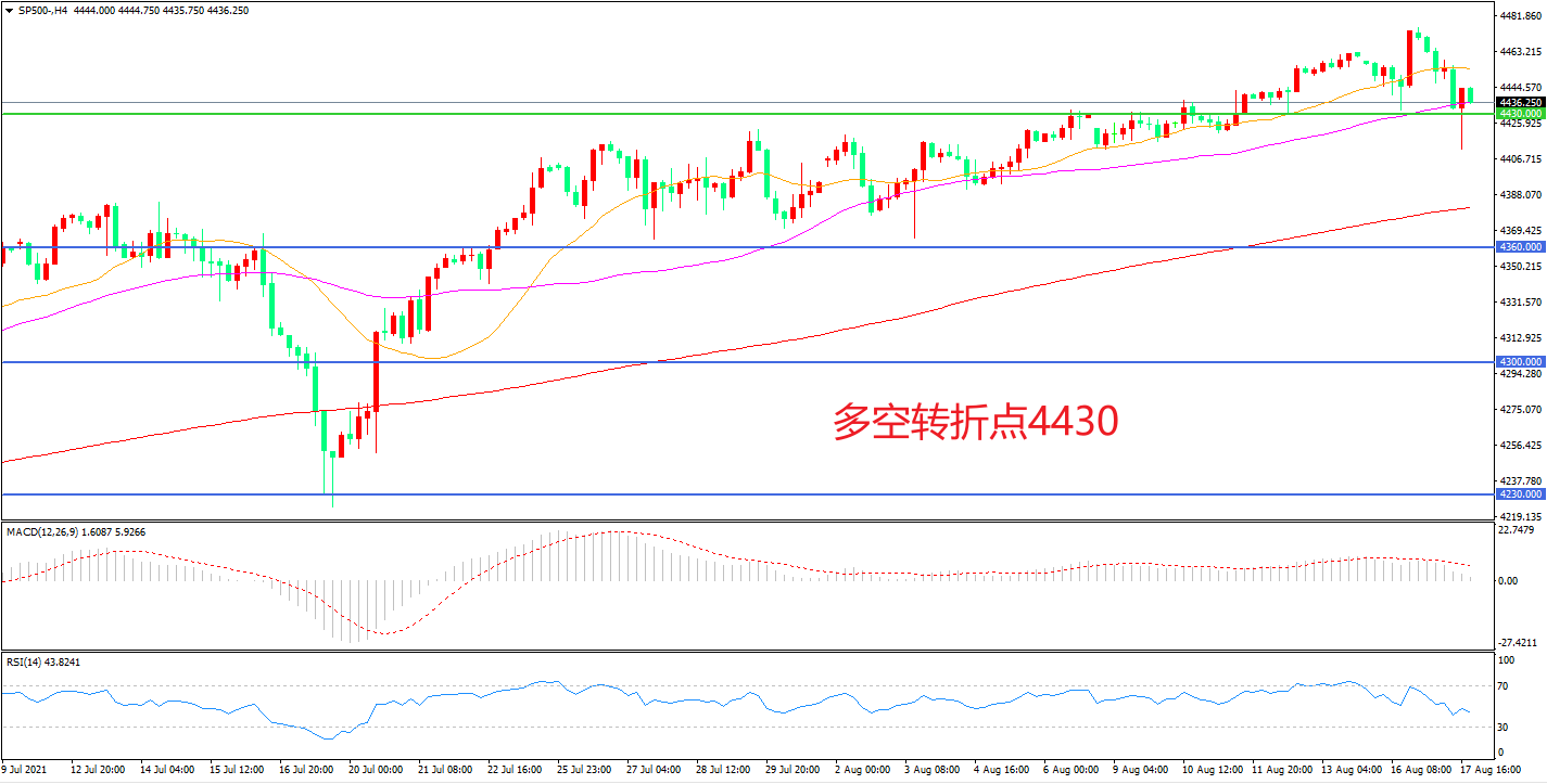 备选策略:在4430.00之下看跌,目标4360.00 4300.00