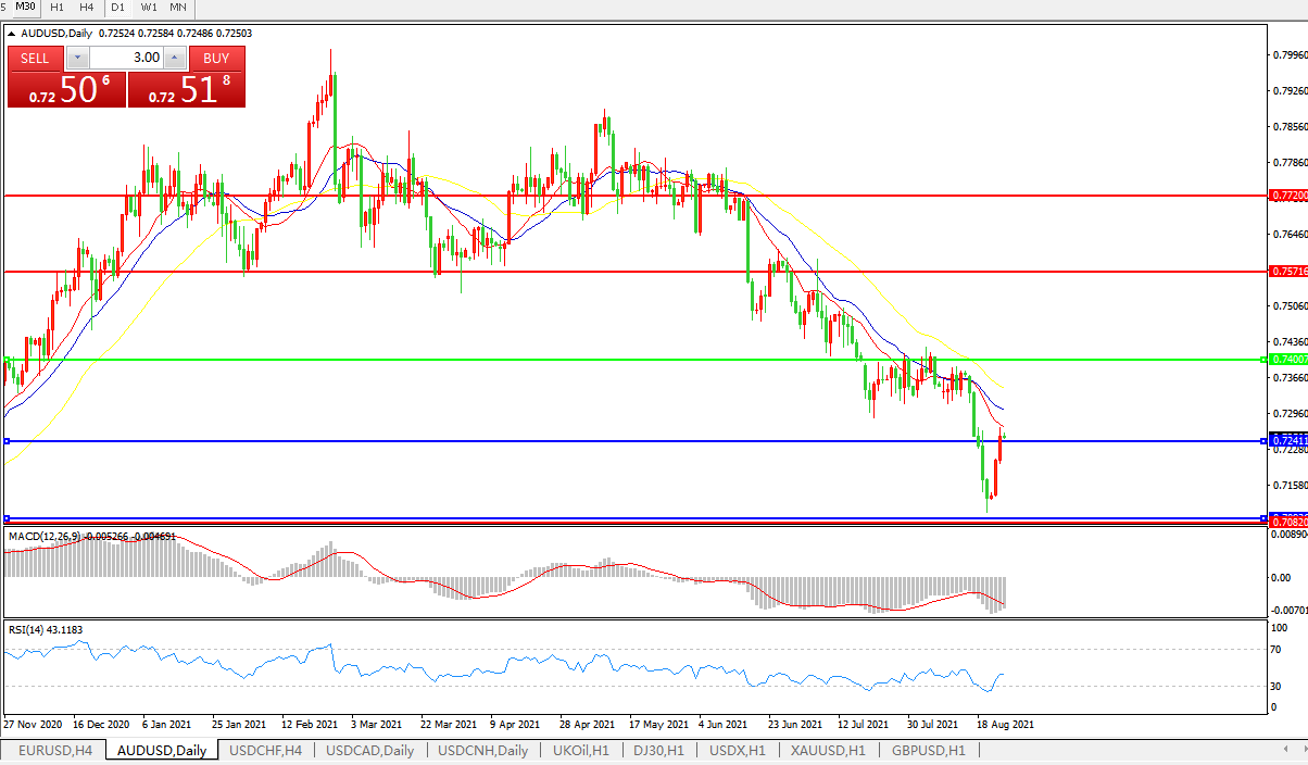 交易策略:0.7400下方看跌,目标0.7240、0.7080
