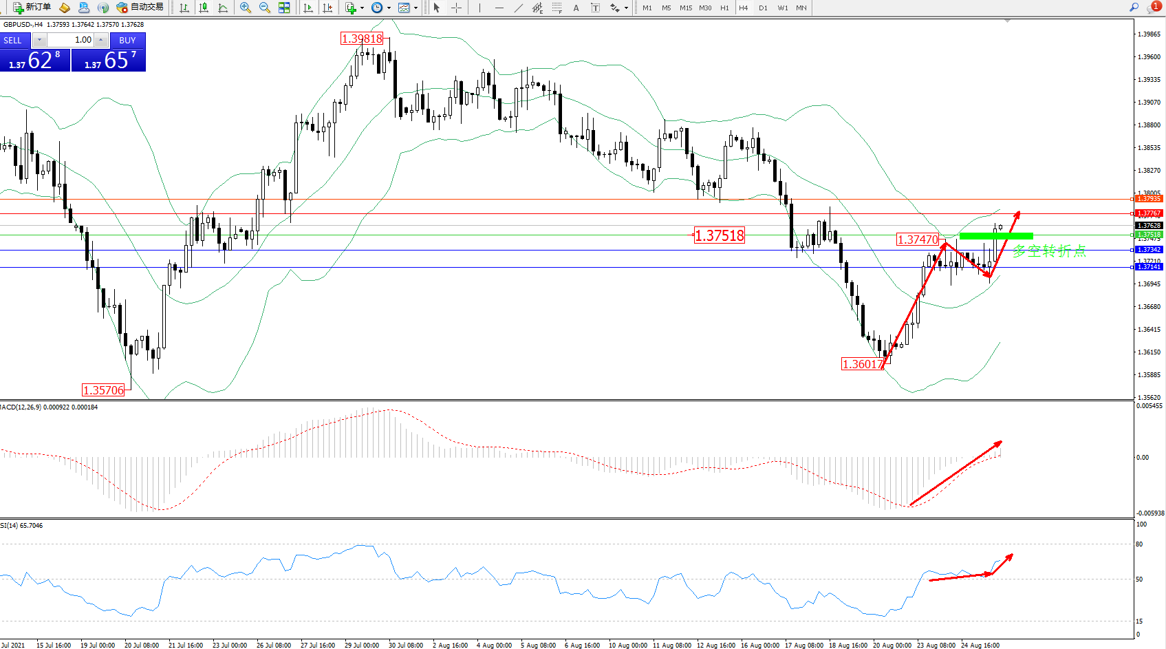 交易策略:1.37518上方看涨,目标1.37767、1.37935