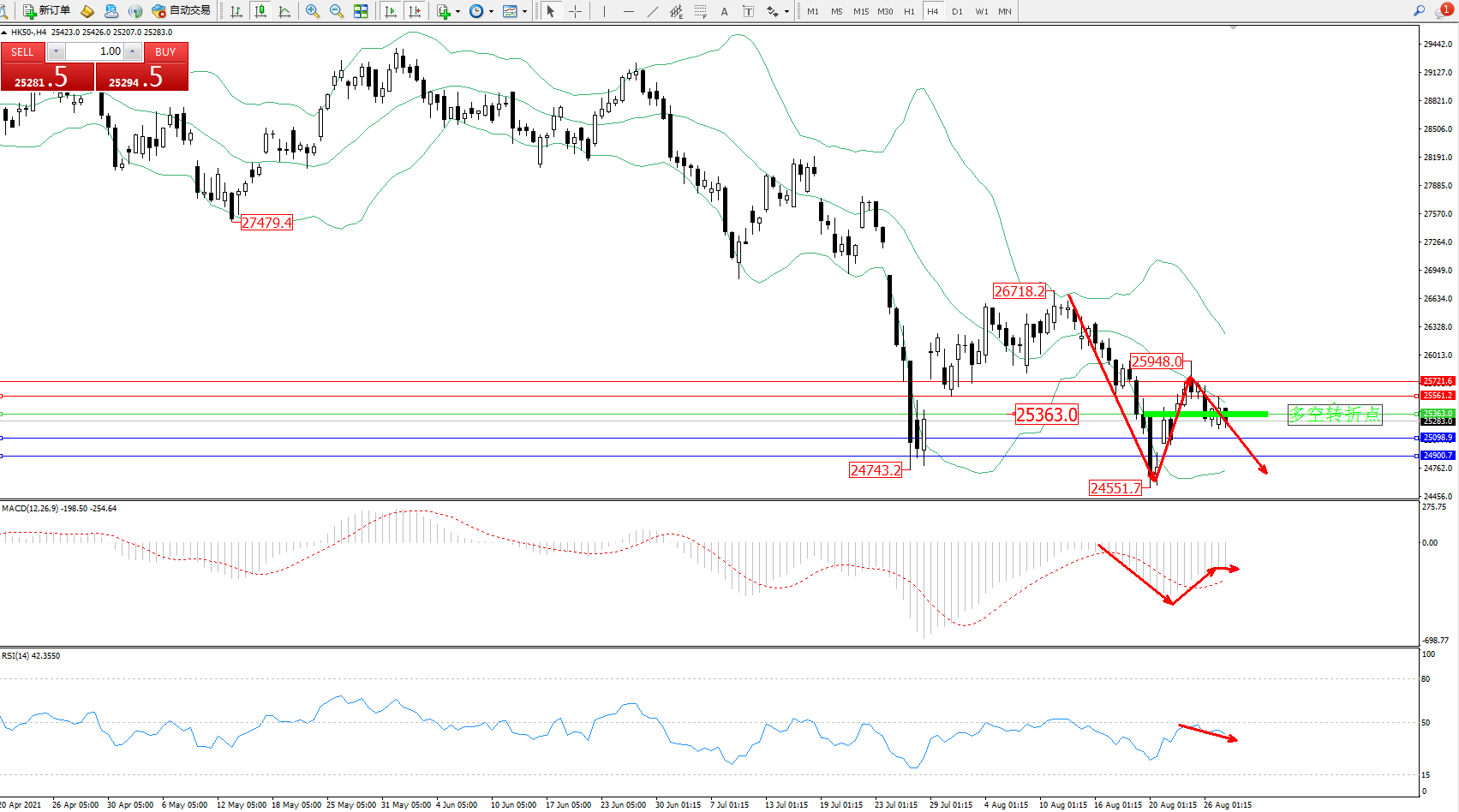 香港恒生指数8月27日(周五)收盘下跌7.8点,跌幅0.03%,报25407.89点;港股三大指数早盘冲高后逐步回落,临近尾盘又再度回升。恒生科技指数跌0.23%报6322点。前期连续大跌的恒大概念股反弹领涨,汽车股全天表现强势,型科网股走势分化,京东集团涨近3%,小米、快手、网易涨超1%,阿里巴巴大跌近4%,腾讯跌超1%。近日活跃的电力股集体下跌,华能国际电力大跌6%,中国电力大跌5%,濠赌股、中医药股、手游股全线表现弱势。今日大市成交额缩量至1289亿港元,南下资金净流出13.3亿港元。近日,广期所和香港交易及结算所有限公司签署谅解备忘录。根据谅解备忘录,未来双方将聚焦服务国家“碳达峰,碳中和”目标,共同研究在境内外市场进行产品合作的可能性,推动在交易所清算、技术等领域的经验交流,加强在市场宣传、投资者教育等方面的资源共享。