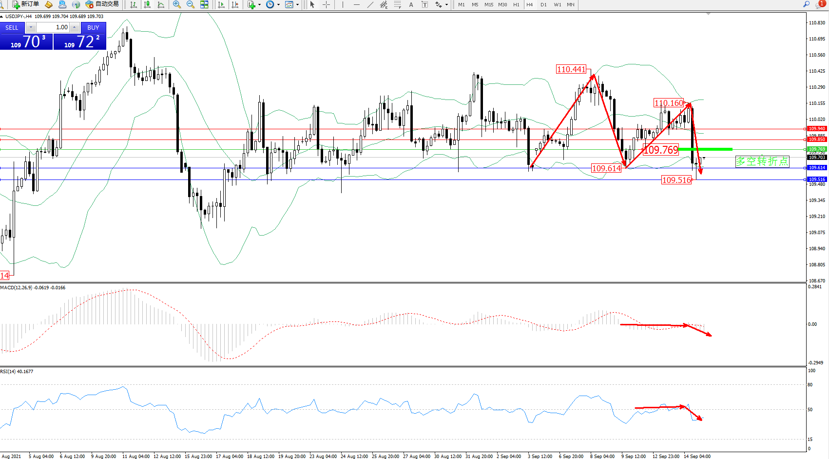 技术点评:长时间维持在布林带指标通道内宽幅震荡,多次触及上下轨区间节点,空头动力急速下挫破布林带指标下轨后抵达109.516位置开始整理,短期纠结于下轨内侧震荡,布林带指标呈收口走势后开始缓慢张口,MACD指标处于0轴线附近弱势徘徊后缓慢向下移动,RSI指标处于50均衡线附近整理后进入空头区域震荡;