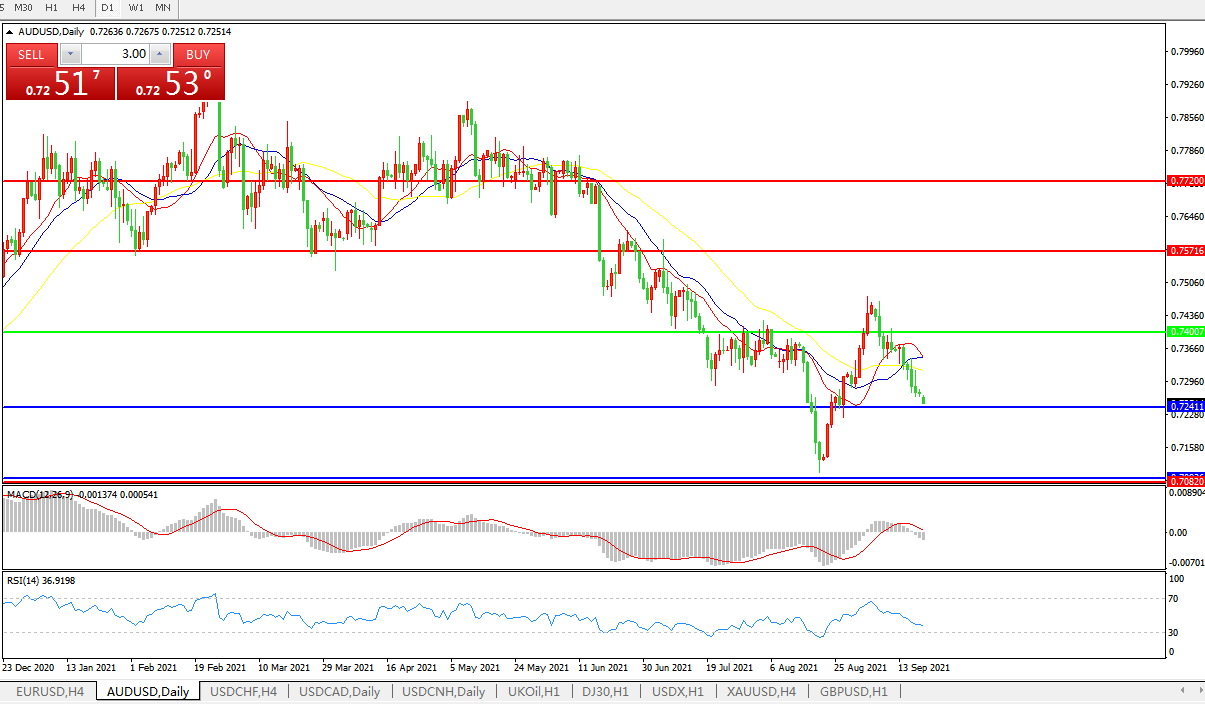 交易策略:0.7400下方看跌,目标0.7240、0.7080
