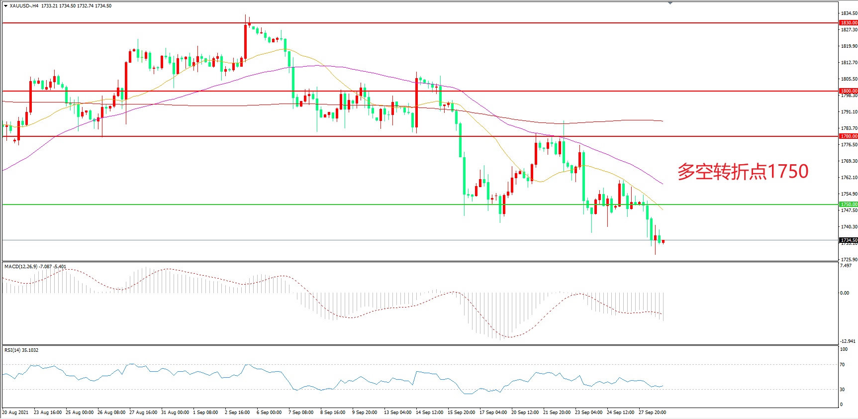 多空转折点:1750.00
