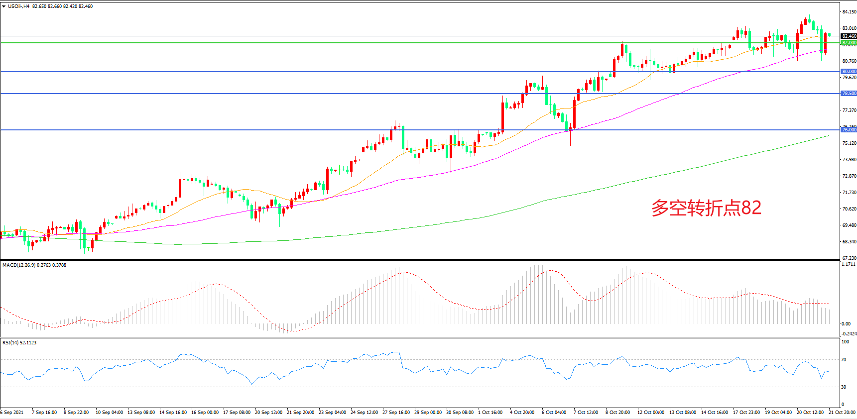 周三(10月20日),部分投资者对最近的涨势进行获利了结导致油价回落,但美国市场稳健的需求以及市场在煤炭和天然气价格飙升情况下转向燃油发电,限制了油价跌势,美国WTI原油先跌后涨,收报82.45美元/桶。下一次产油国会议将在11月4日召开,美国白宫曾多次敦促OPEC+增产,重点关注OPEC的增产动向。