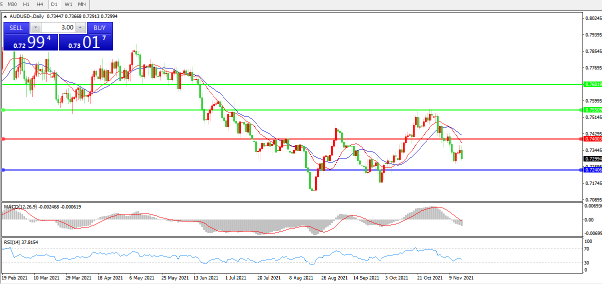 交易策略:0.7400下方看跌,目标0.7240、0.7080