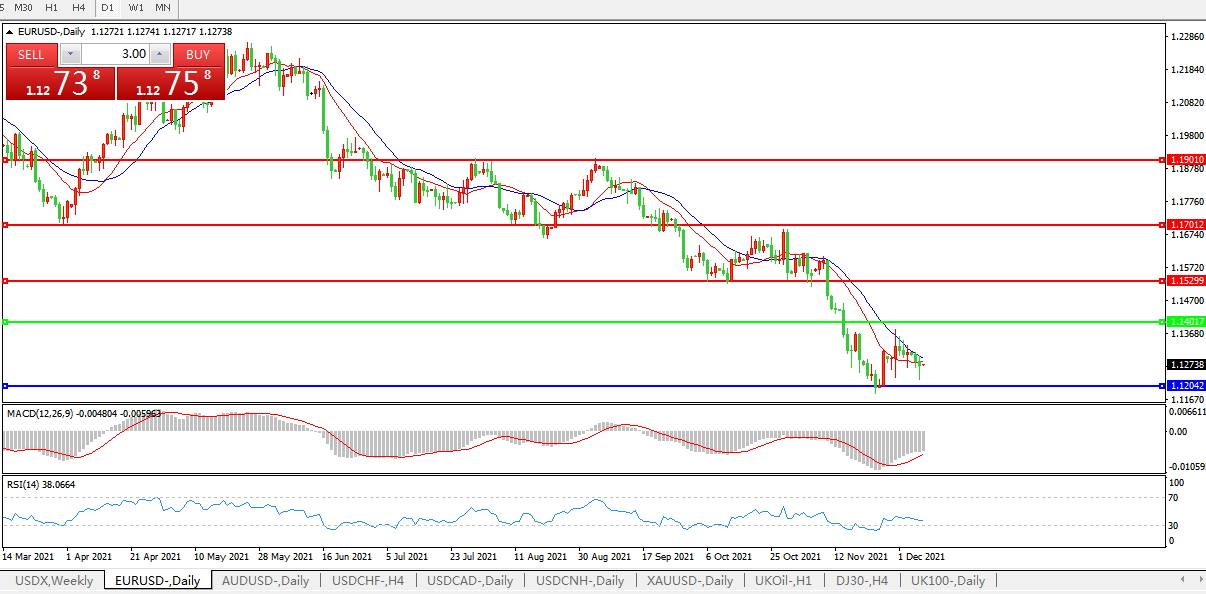 技术面简析:日图均线呈空头排列,汇价反弹后再度下行,MACD运行于0轴下但量能再度放量,RSI小幅走弱 ,预计短期汇价大概率将进一步下行。