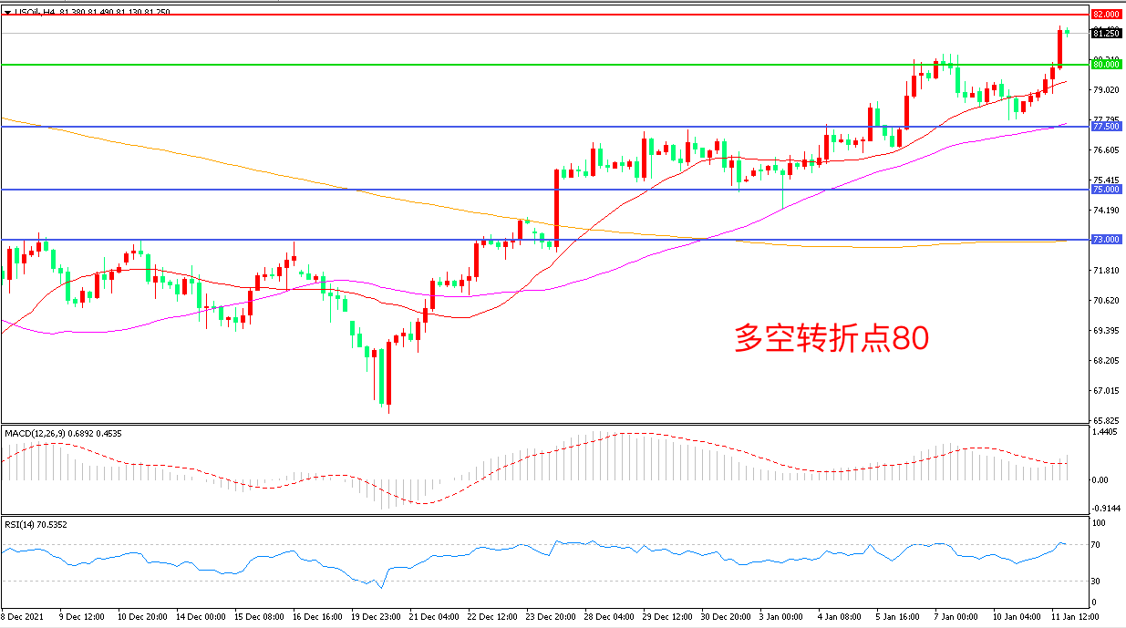 交易策略:在80.00之上看涨,目标82.00 85.00