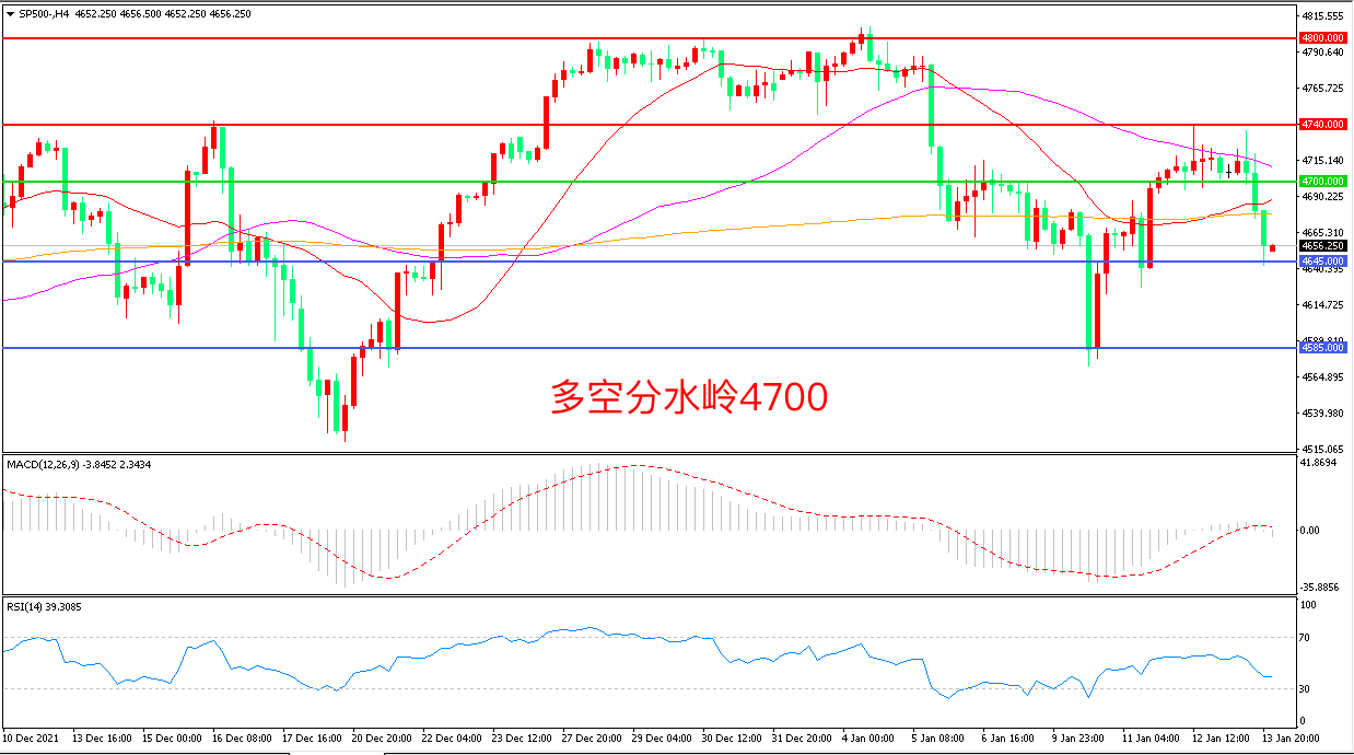 交易策略:在4700.00之下看跌,目标4645.00                           4585.00