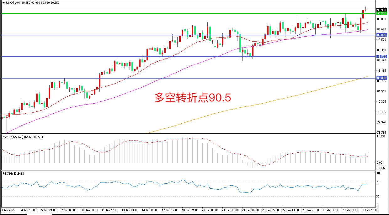 交易策略:在90.50之上看涨,目标93.00 96.00