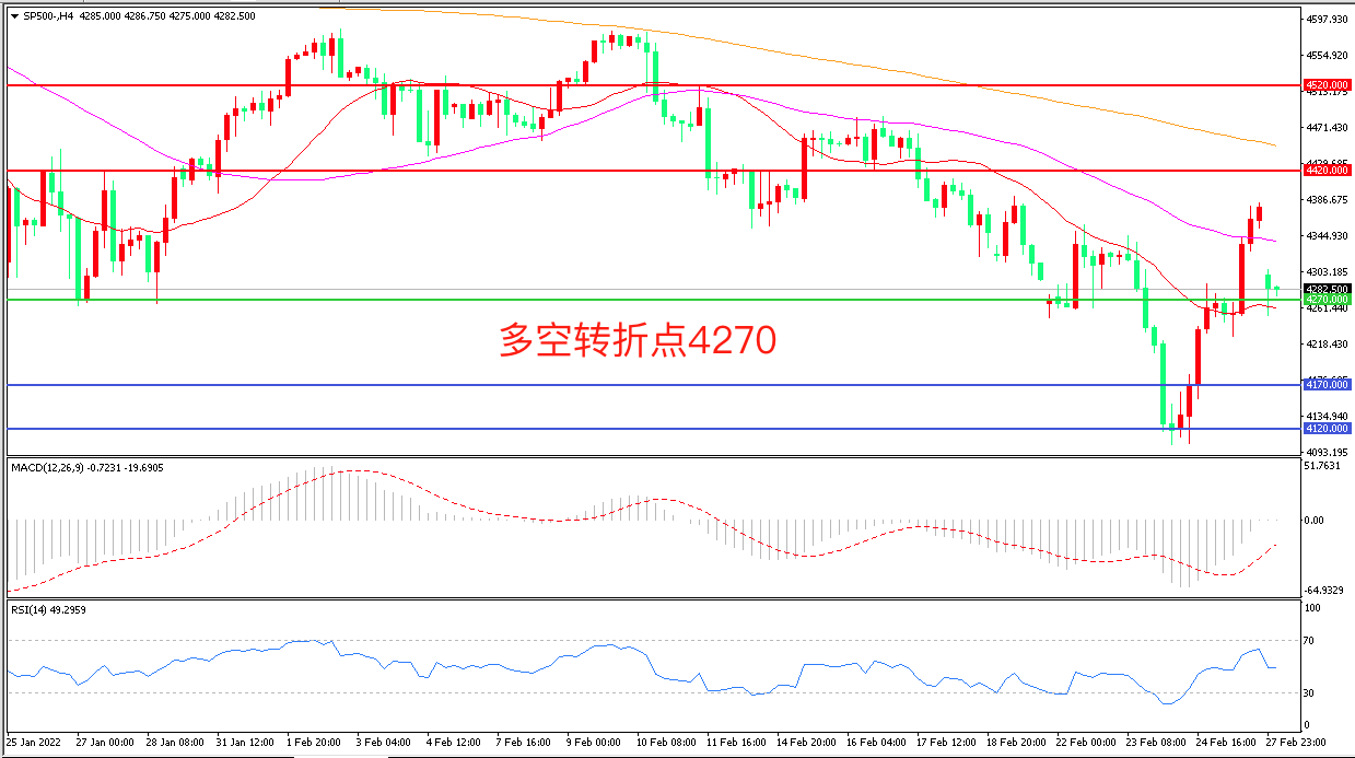 上周五(2月25日),由于俄罗斯释放愿意外交谈判的信号,且欧美对俄制裁不如预料的那样严厉,市场情绪得到提振,标普500震荡拉升,收报4284.75点。周一(2月28日),俄罗斯释放强硬信号,标普500跳空高开,截至发稿前收报1915美元/盎司。本周,鲍威尔将向美国众议院金融服务委员会发表半年一次的货币政策报告,并在参议院金融委员会出席听证,这可能是在开始加息之前他最后一次就货币政策发表公开讲话,务必重点关注。