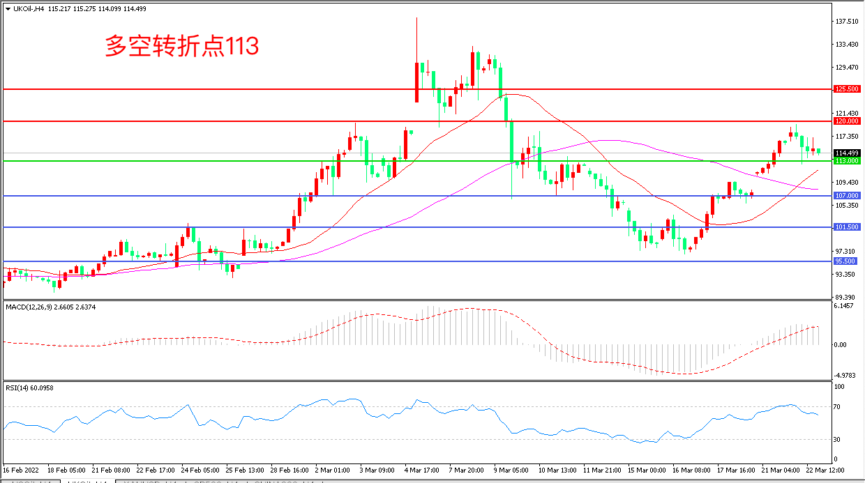 周二(3月22日),俄乌局势有所缓解,德国带头反对欧盟可能对俄罗斯石油实施的禁运制裁,原油断供担忧缓解,布伦特原油小幅回落,收报114.49美元/桶。目前投资者仍爱权衡市场供应紧张之际失去俄罗斯石油供应的影响,二季度若谈判顺利,地缘溢价有望继续回落,否则油价维持高位概率较大。