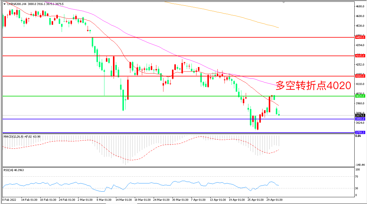 交易策略:在4020.00之下看跌,目标3850.00                3750.00
