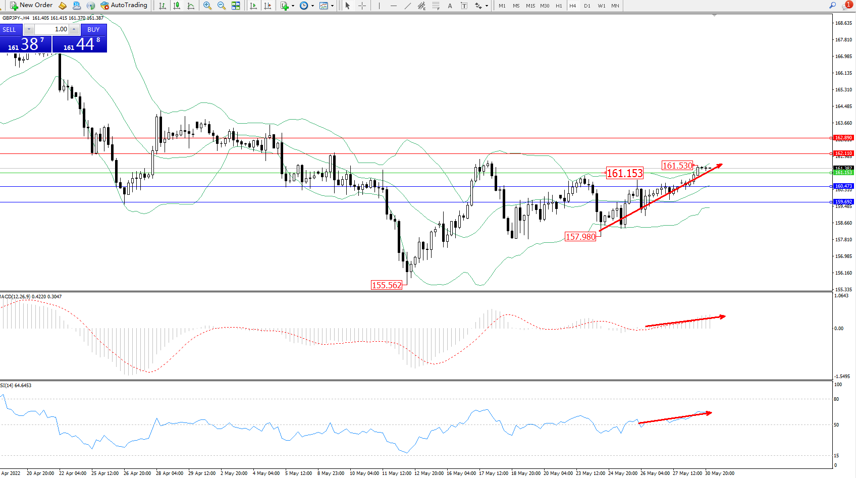 技术点评:多头动力延续布林带指标通道中上轨区间持续震荡上扬,高位抵达161.530附近节点后开始整理,短期多头动力有继续向上移动态势,布林带指标呈收口走势不断上移中,MACD指标处于0轴线上側维持弱势窄幅整理,RSI指标处于50均衡线上側维持窄幅徘徊;