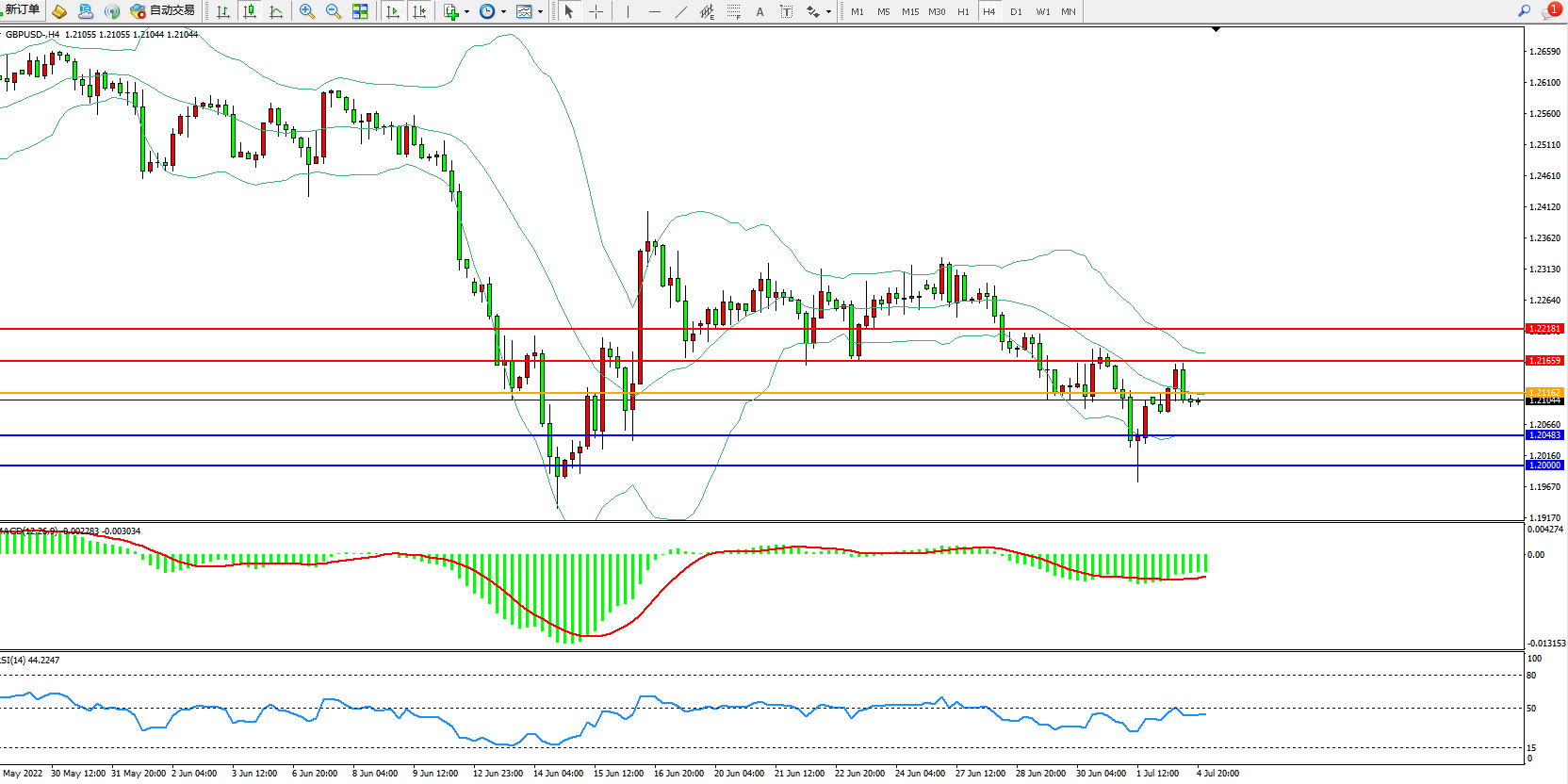 交易策略:1.21162下方看跌,目标1.20483、1.20000