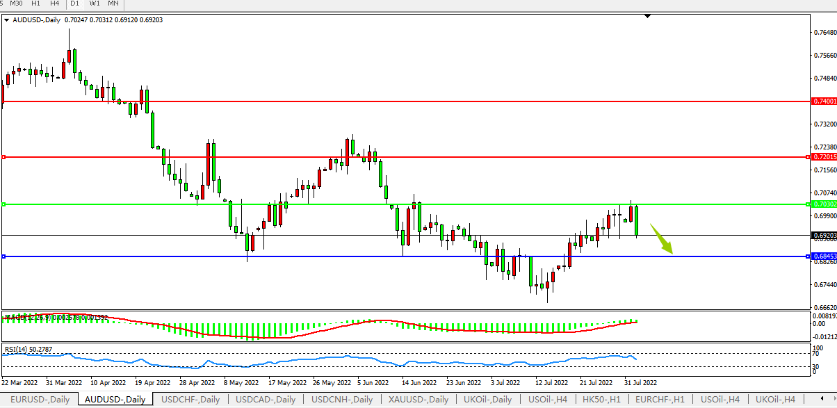 交易策略:0.7030下方看跌,目标0.6850、0.6700