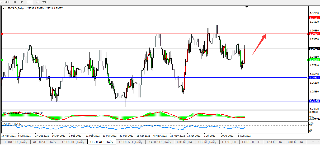 美元兑加元USDCAD  日线图: