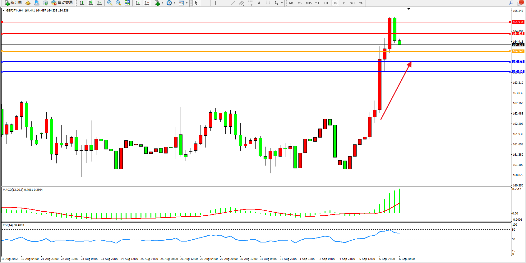 英镑兑日圆维持高位164.336附近震荡,英国8月零售销售同比增幅放缓至1.0%,消费者减少非必需支出;英国8月消费者支出同比增长4.7%,是2021年3月以来的最小增幅,其中食品等必需品支出增长7.2%,是2021年12月以来的最大增幅。
