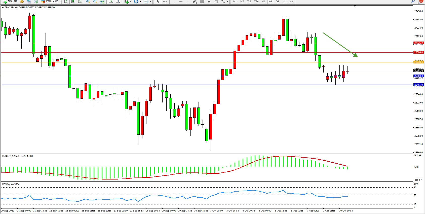日经225指数10月7日(周五)收盘下跌217.80点,跌幅0.80%,报27093.50点。东京证交所日前公布的2022年4~9月各投资部门买卖动向(东京和名古屋两个市场)显示,海外投资者对现货股票超卖1.5281万亿日元。在日元贬值对日本企业而言已不再是一大利好的背景下,投资者因不愿看到按美元换算的资产价值减少,正加强抛售日本股票的姿态