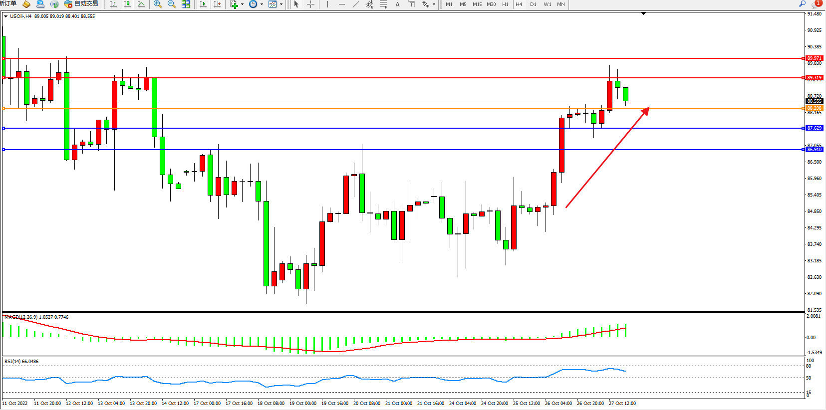 原油USOil——4小时K线图显示:
