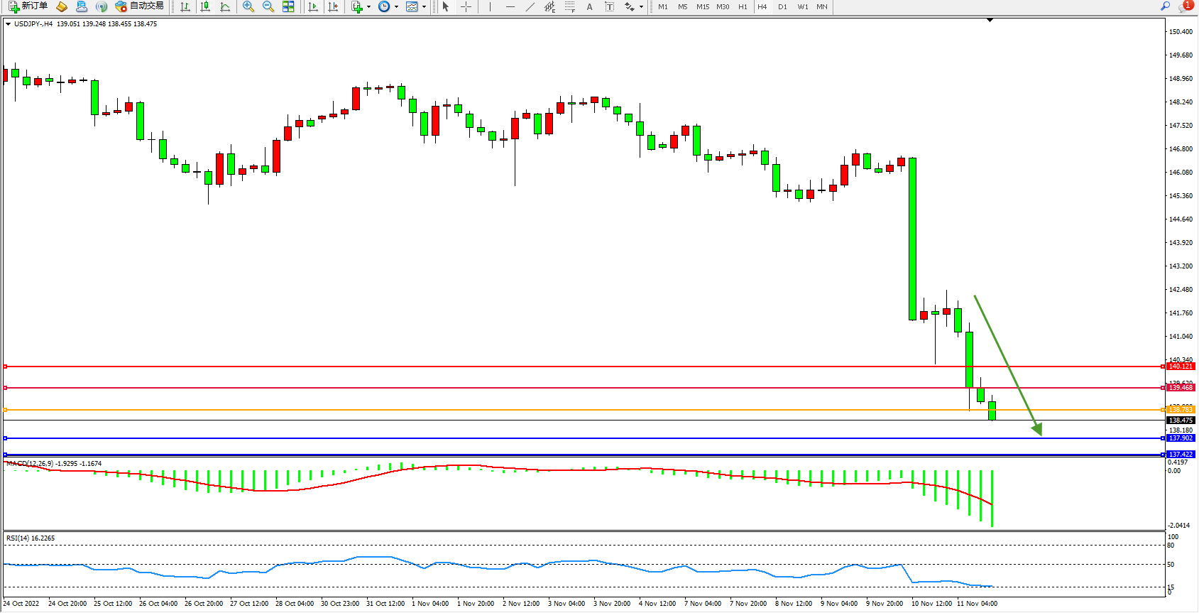 交易策略:138.783下方看跌,目标137.902、137.422