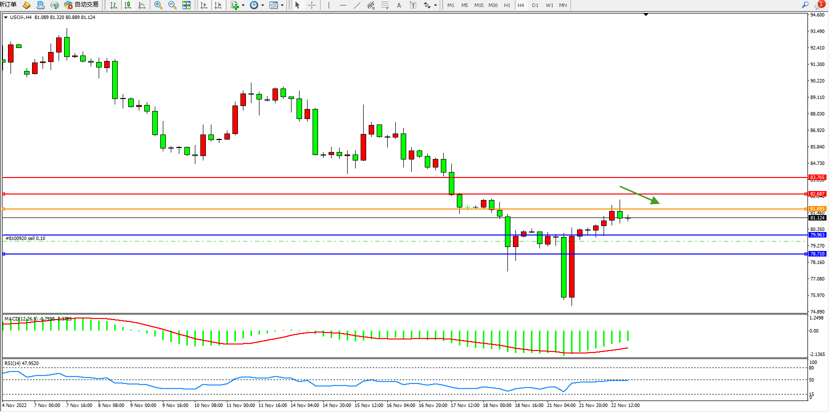 原油USOil——4小时K线图显示: