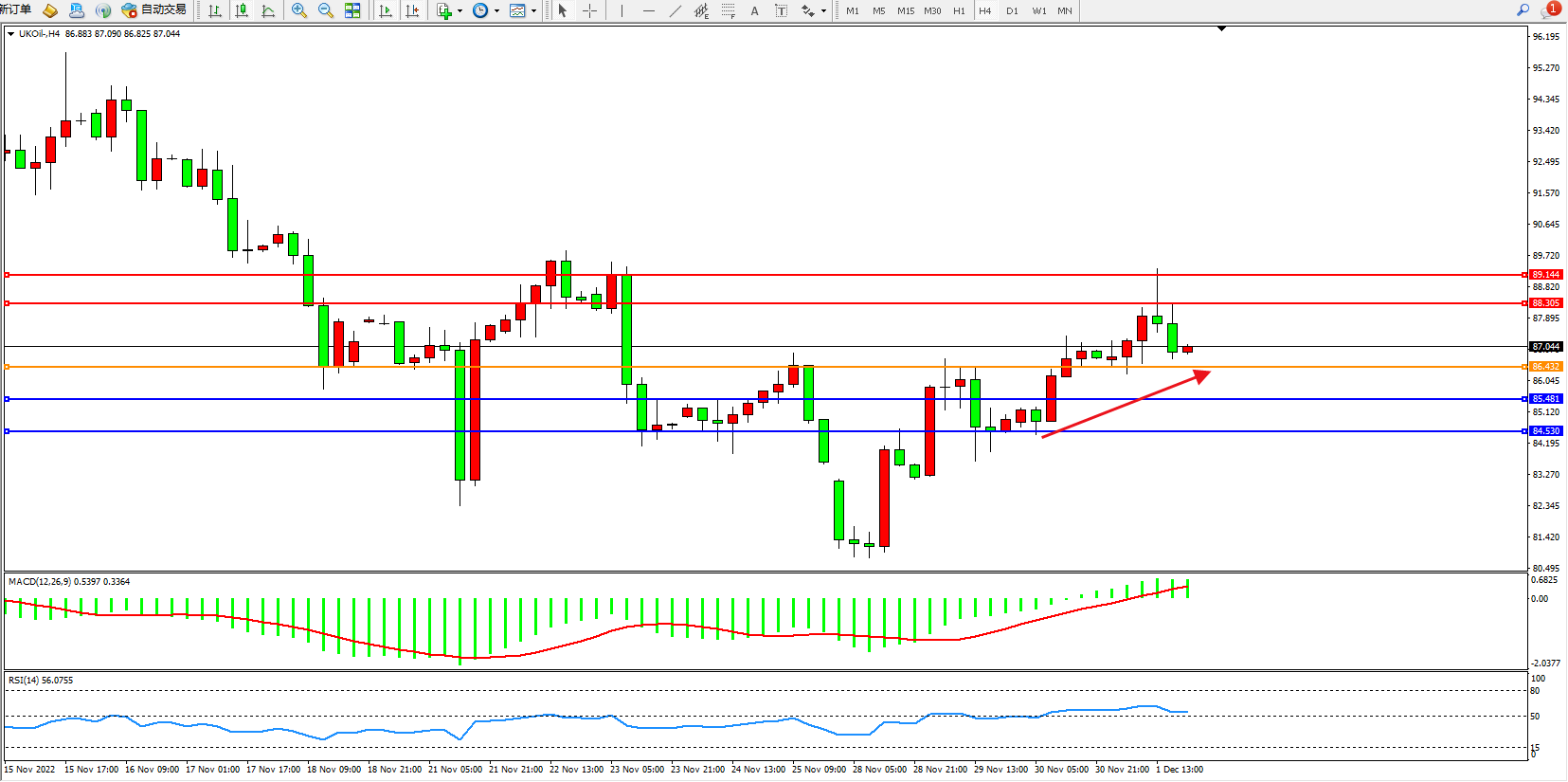 布油维持87.044附近震荡,在石油输出国组织及其合作伙伴(OPEC+)召开会议之前,不确定性依然存在。市场也在为欧洲制裁俄罗斯石油的潜在影响做好准备。美国方面担心,欧盟审议的价格上限区间偏高。