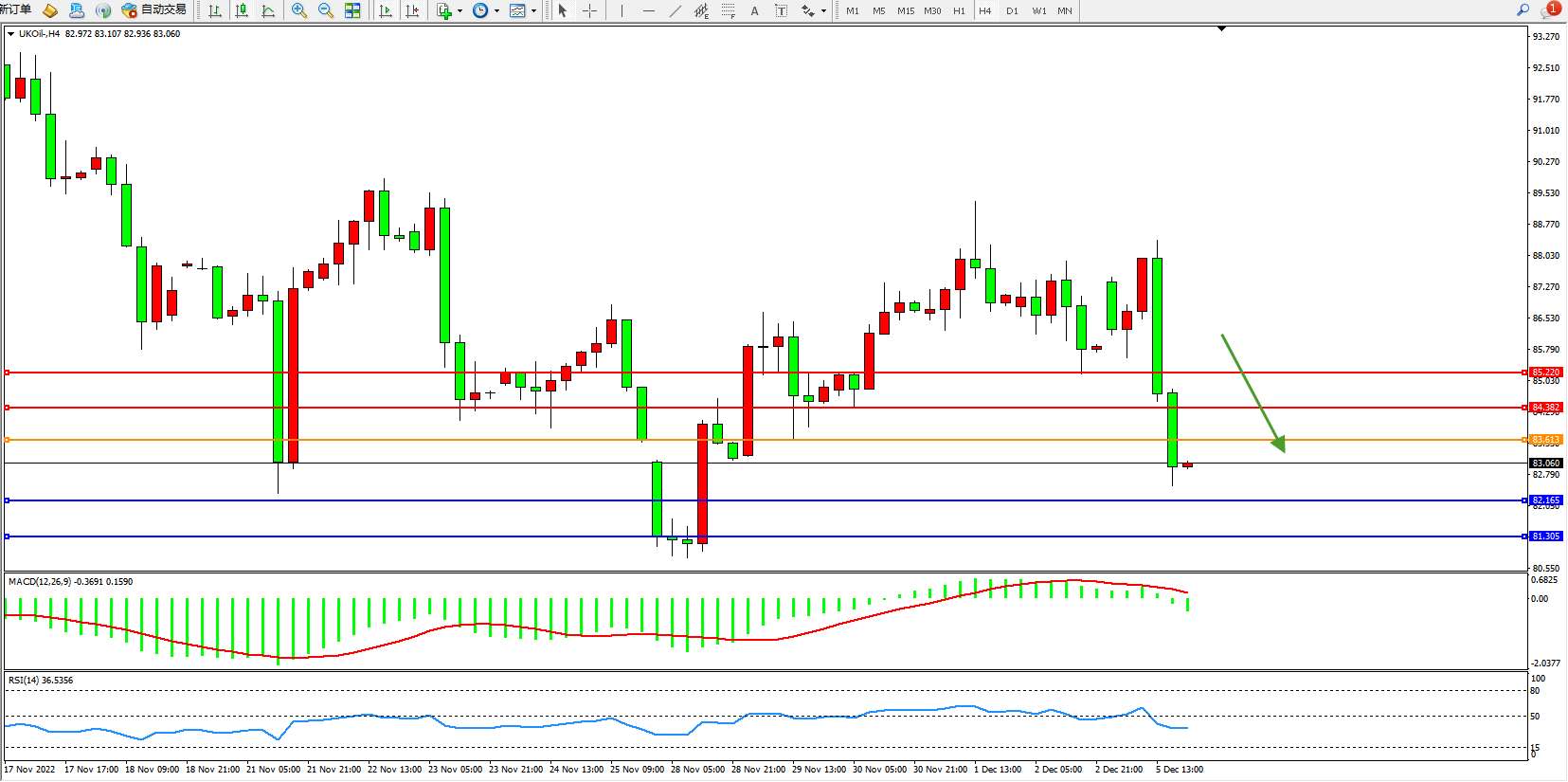 布油UKOil——4小时K线图显示:
