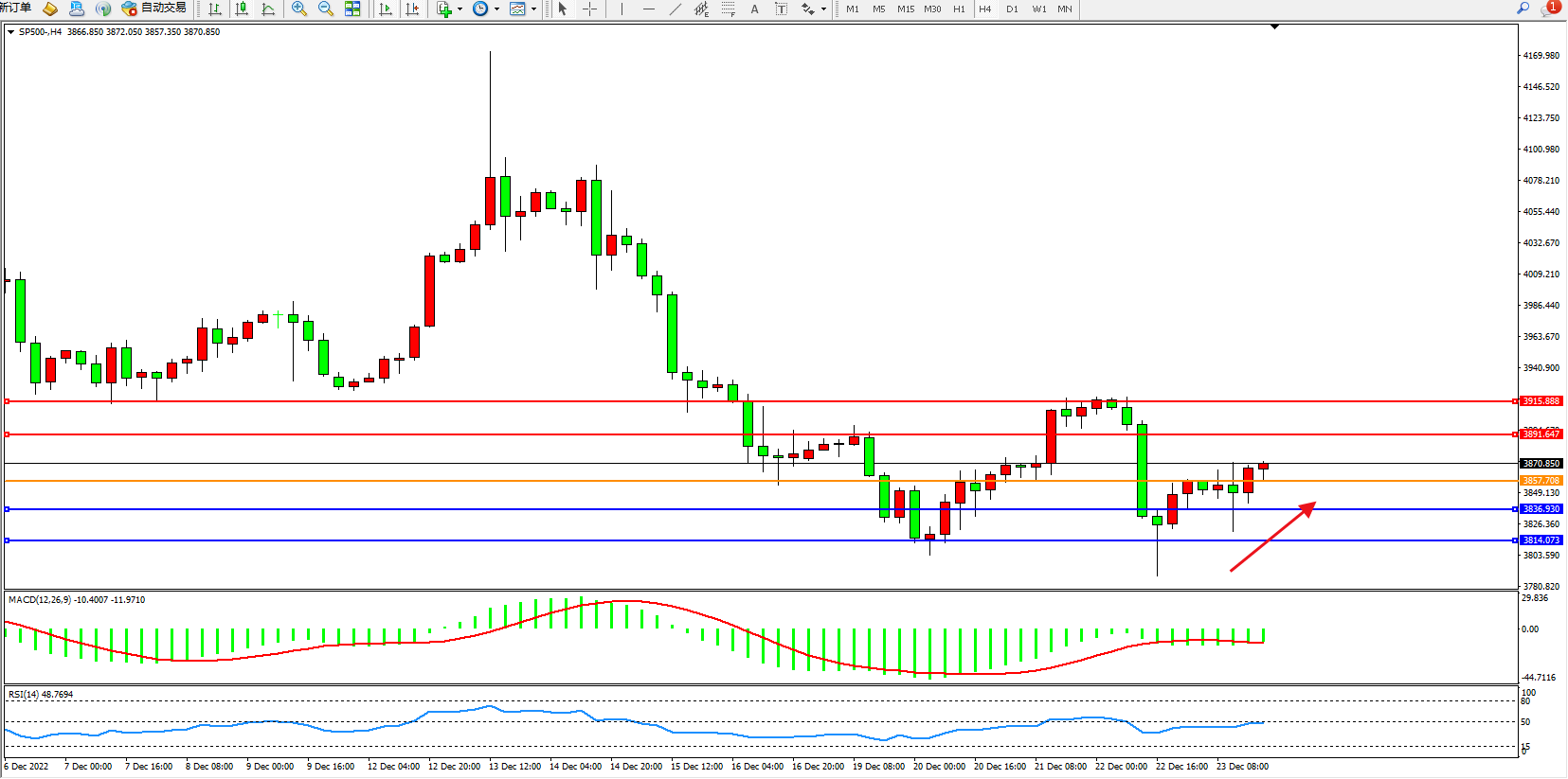 标普500指数12月23日(周五)收盘上涨22.37点,涨幅0.59%,报3844.76点;衡量美国物价的关键指标在11月份仅上涨0.1%,这是通胀在今年夏季达到40年高点后连续第五个月回落。美国11月核心PCE物价指数月率上涨0.2%,符合华尔街的预期。周一圣诞节休市一日。