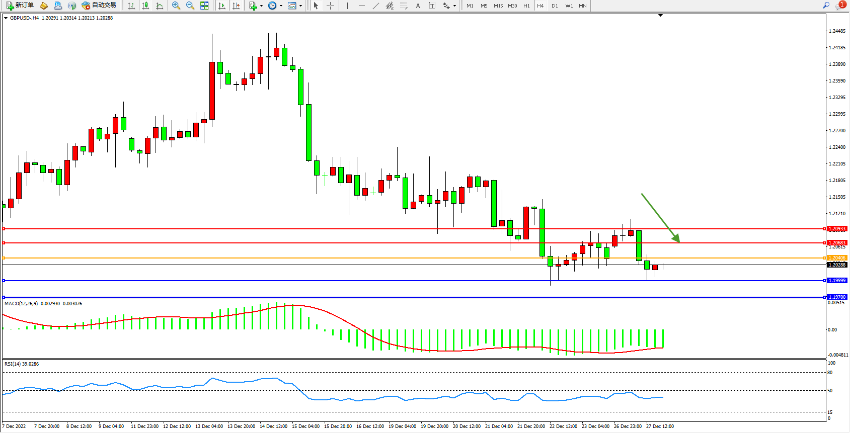 交易策略:1.20406下方看跌,目标1.19999、1.19700