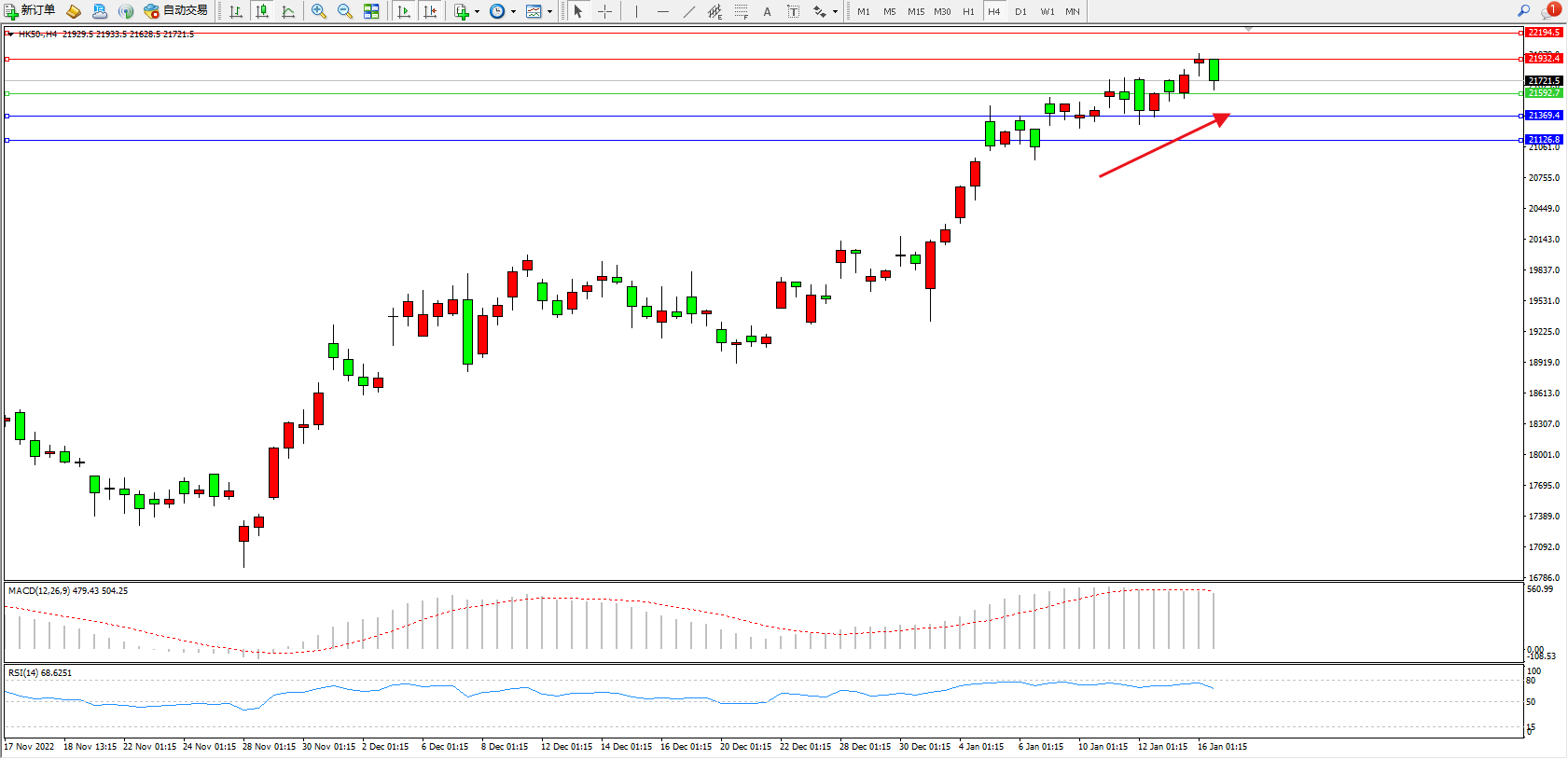 恒指HK50 4小时图