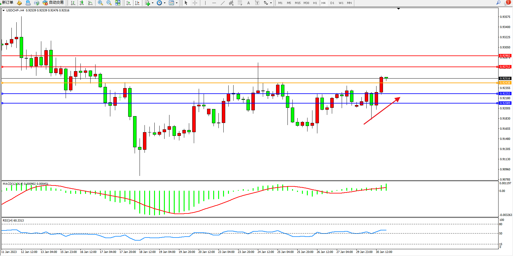 交易策略:0.92438上方看涨,目标0.92712、0.92902