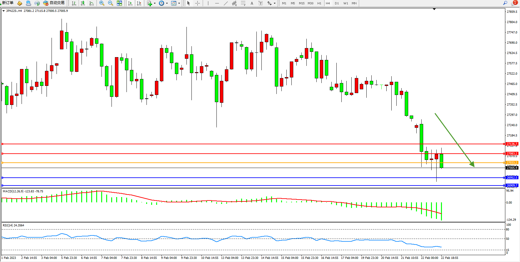 日经225指数2月22日(周三)收盘下跌360.60点,跌幅1.31%,报27112.50点。日本央行委员田村直树:未来某个时候需要重新审查现在的政策,现在继续实行宽松政策是合适的,将需要更多时间来衡量日本央行迄今采取的措施对市场功能的影响,我们现在所处的阶段需要仔细观察日本是否会实现工资-物价螺旋上涨的良性循环。