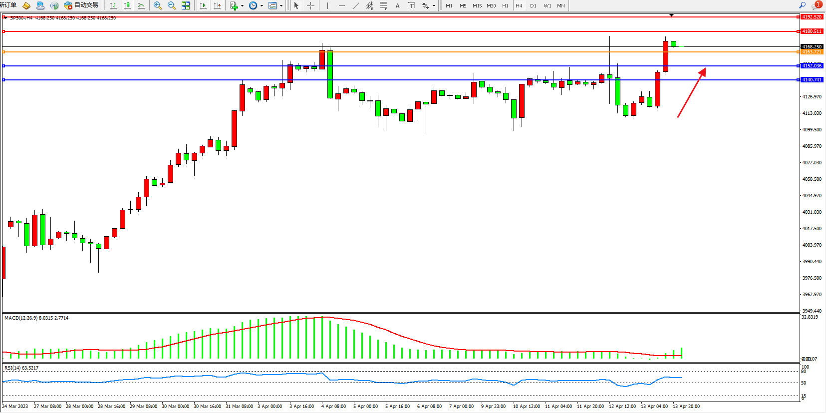 标普500指数4月13日(周四)收盘上涨54.45点,涨幅1.33%,报4146.40点;美国3月总体PPI年率录得2.70%,前值和预期值分别为4.6%和3%,走势与隔夜公布的3月CPI数据走势相符。同时公布的美国截至4月8日当周初请失业金人数走高,3月PPI核心年率符合预期的3.40%,低于前值4.4%。