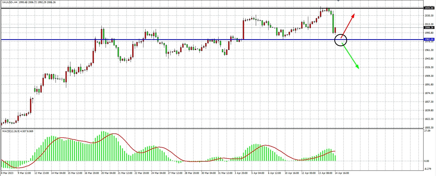 现货黄金XAUUSD 四小时图